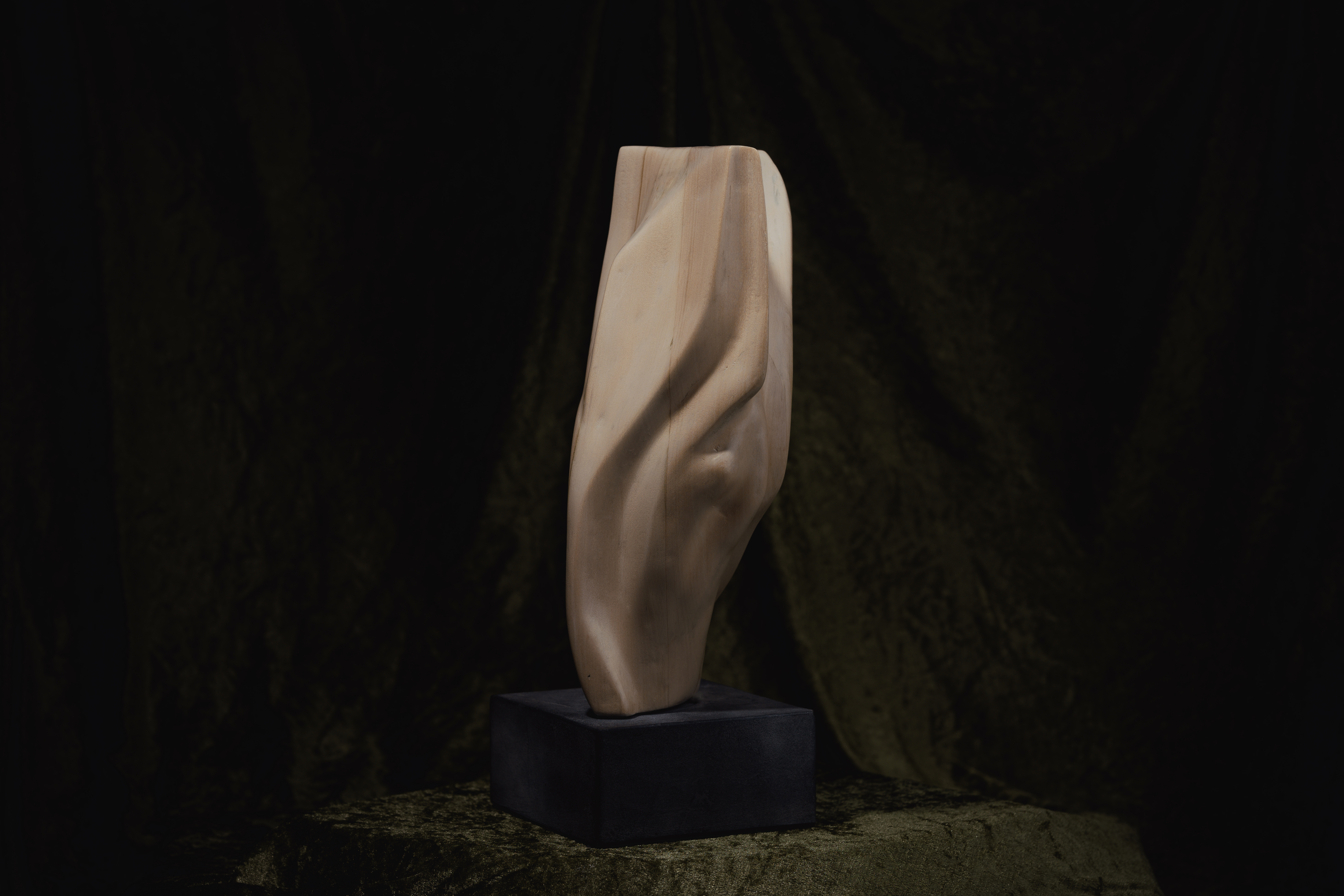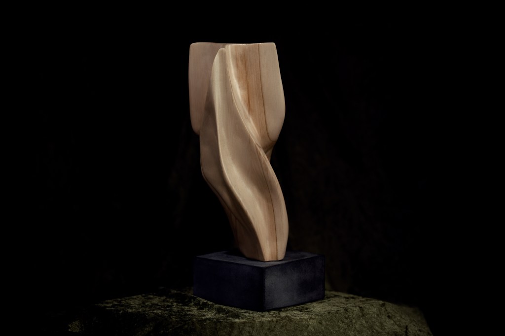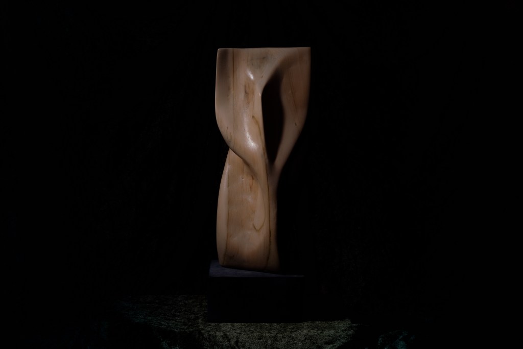 Oto moja pierwsza rzeźba wykonana z drewna lipowego. Przedstawia abstrakcyjną formę o wymiarach 15,5 x 42 cm (wraz z 8-centymetrową podstawą), umieszczoną na kamienno-cementowej podstawie. Pracę nad rzeźbą rozpoczęłam w @pracownia_lazarska pod okiem @trusewiczlukasz